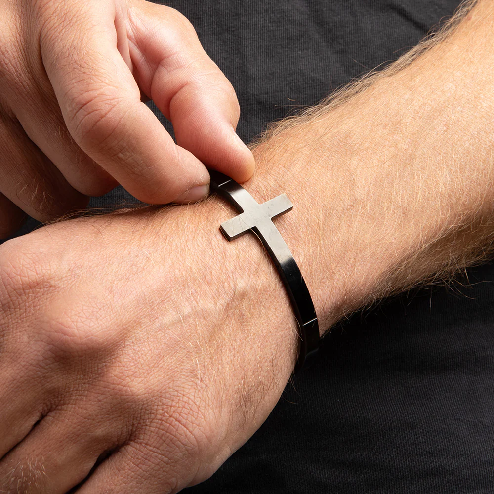 Embrace the profound sacrifice of Jesus Christ with the Conquer Death Cuff Bracelet. Born into this world, He endured persecution, suffering, and death—all for our salvation. But His story doesn’t end there. Jesus rose from the dead, conquering sin and death. This bracelet is a powerful symbol of that victory, reminding us that through His sacrifice, we, too, can achieve eternal life. Wear it with unwavering faith, knowing that His triumph is our salvation.