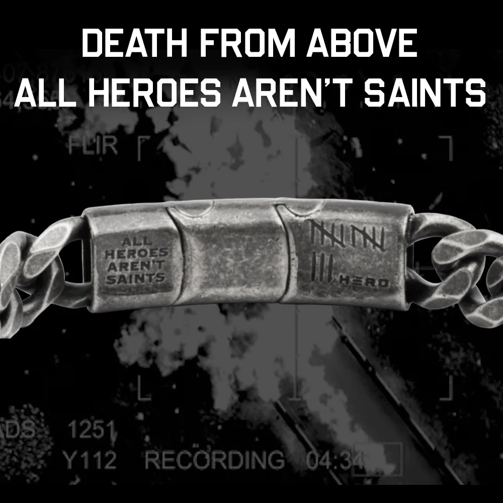 The  Death From Above Bracelet is made for those who know real heroism is scarred, hard-edged, and far from saintly. Crafted from durable, military-grade stainless steel, this piece nods to anyone who’s walked into hell because it’s where they were needed, then came out the other side changed but unbroken. Just like the missions it honors, it’s unyielding and unapologetic—a reminder of the grit it takes to get the job done when the odds—and the people writing them—are stacked against you.Â