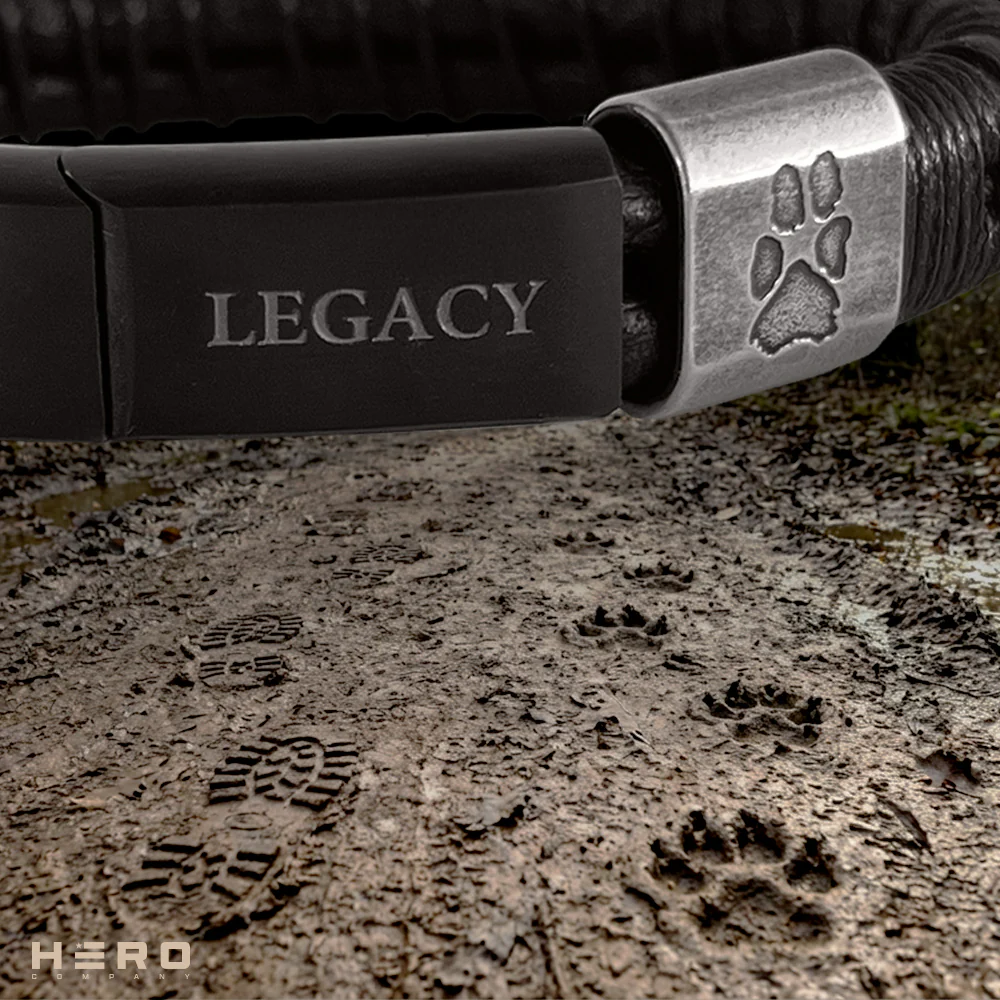 The clasp bears the word LEGACY, because every dog leaves one. Usually in your soul. On the back, SEMPER MECUM — Always With Me. Built to endure. Made for those who never forget the ones who walked beside them.